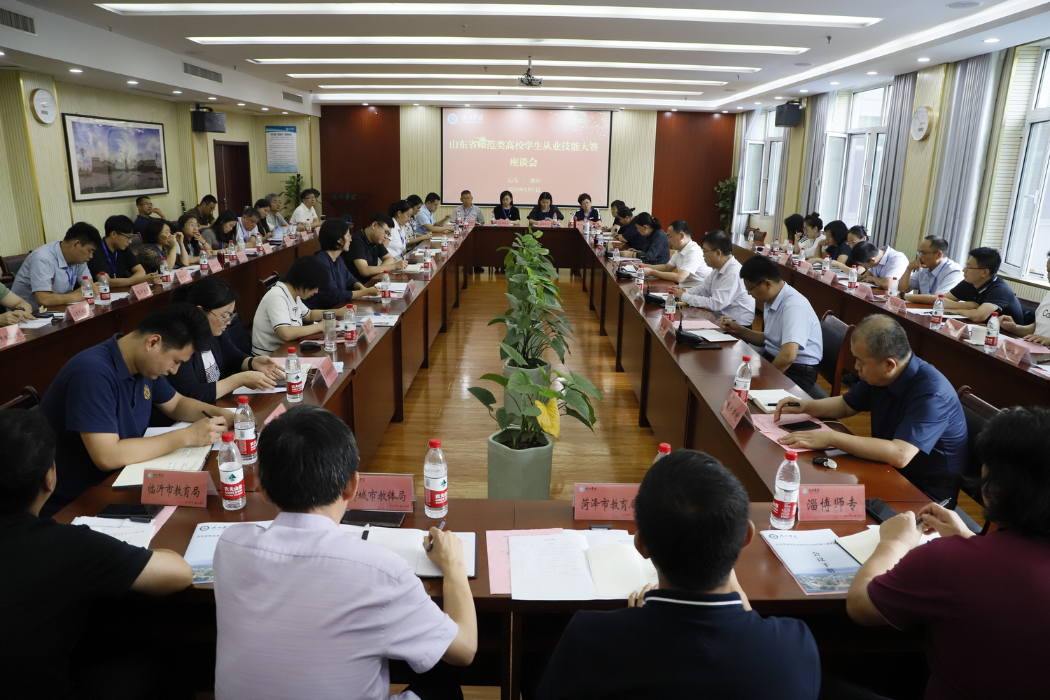 9月1日,山东省师范类高校学生从业技能大赛座谈会在Beat365官网厚德楼二楼报告厅举办。省教育厅高校学生处处长李存岭一行4人,Beat365官网党委副书记、校长赵长林,16市教育(教体)局和23所高校代表参加会议。会议由李存岭主持。