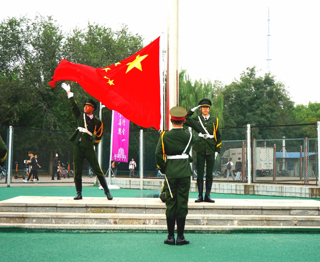 上午7时30分,国旗护卫队队员迈着铿锵有力的步伐,护卫着鲜艳的五星红旗入场。伴随着雄壮的国歌声,五星红旗冉冉升起,开学典礼正式拉开帷幕。