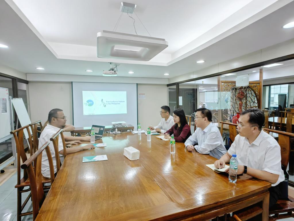 与亚典耀大学孔子学院副院长耿实勇(Cris Gilbert Garcia)、行政助理施愉月(Stephanie Jane Tan)进行座谈交流,双方就孔子学院的管理模式、课程建设及教材使用情况等进行了深入的探讨,并实地调研了亚典耀大学孔子学院图书资料室、活动室、HSK考试教室等。实地调研了菲律宾理工大学校园文化建设情况。