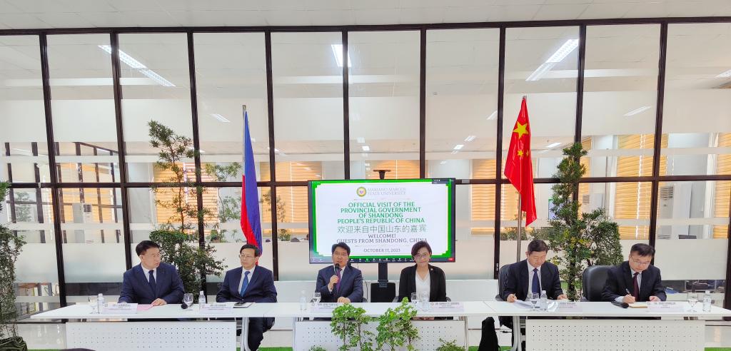 10月17日,山东省与马科斯国立大学交流会在马克斯国立大学举行,山东省人民政府副省长邓云锋、省委外办主任蔡先金、省教育厅副厅长张志刚、马科斯国立大学校长Shirley Agrupis等出席会议。Beat365官网赵长林校长进行交流发言。双方就师生互访、共建山东省-北伊罗戈省人文教育交流基地、Beat365唯一官方网站-马科斯国立大学中菲智慧农业国际联合实验室等进行座谈交流,并达成一致意见。