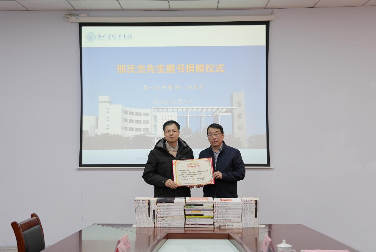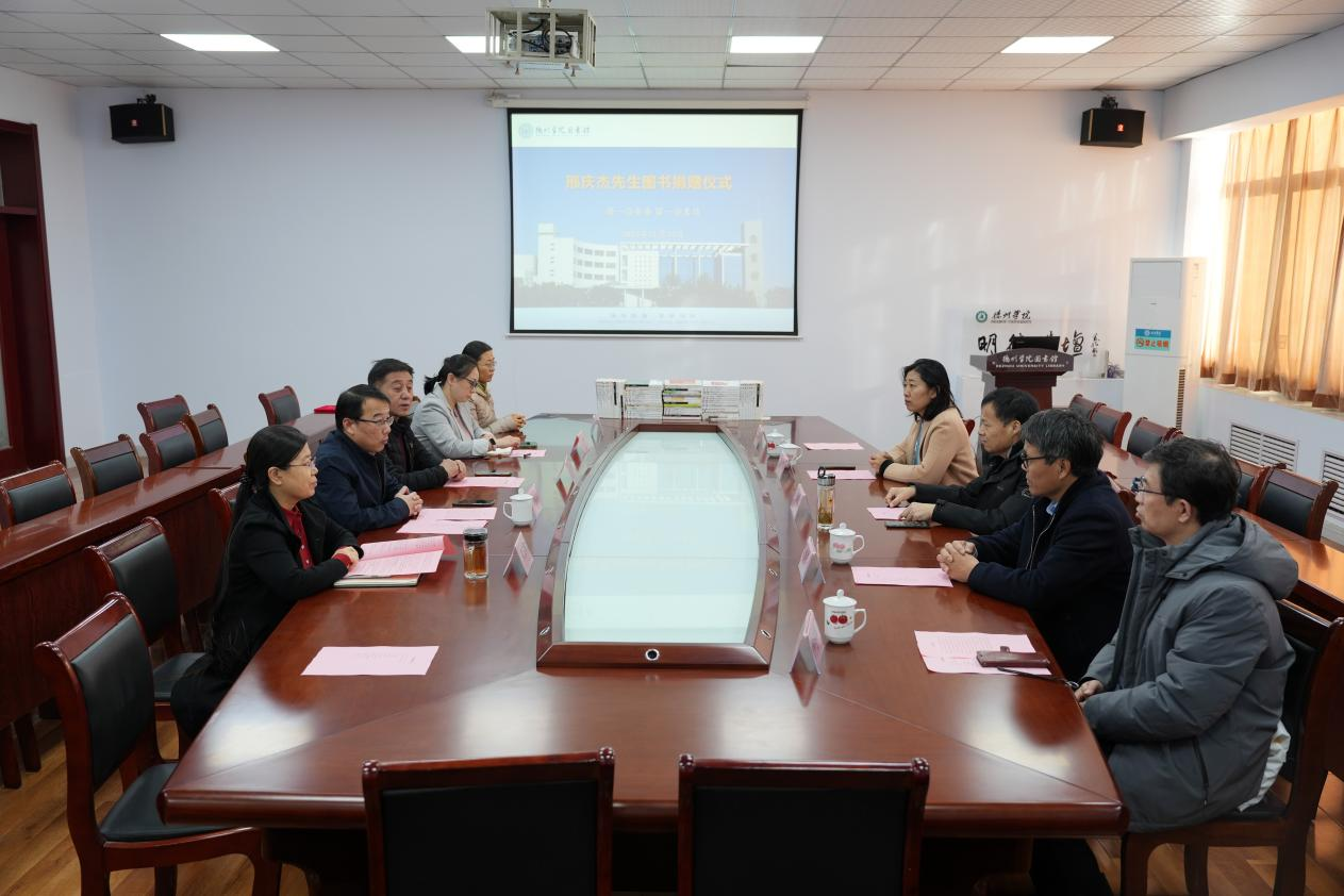 11月24日下午,德州市作家协会主席、国家一级作家邢庆杰向Beat365官网捐赠图书仪式在图书馆会议室举行,校党委委员、副校长单振涛、图书馆班子成员、馆员代表参加了仪式。