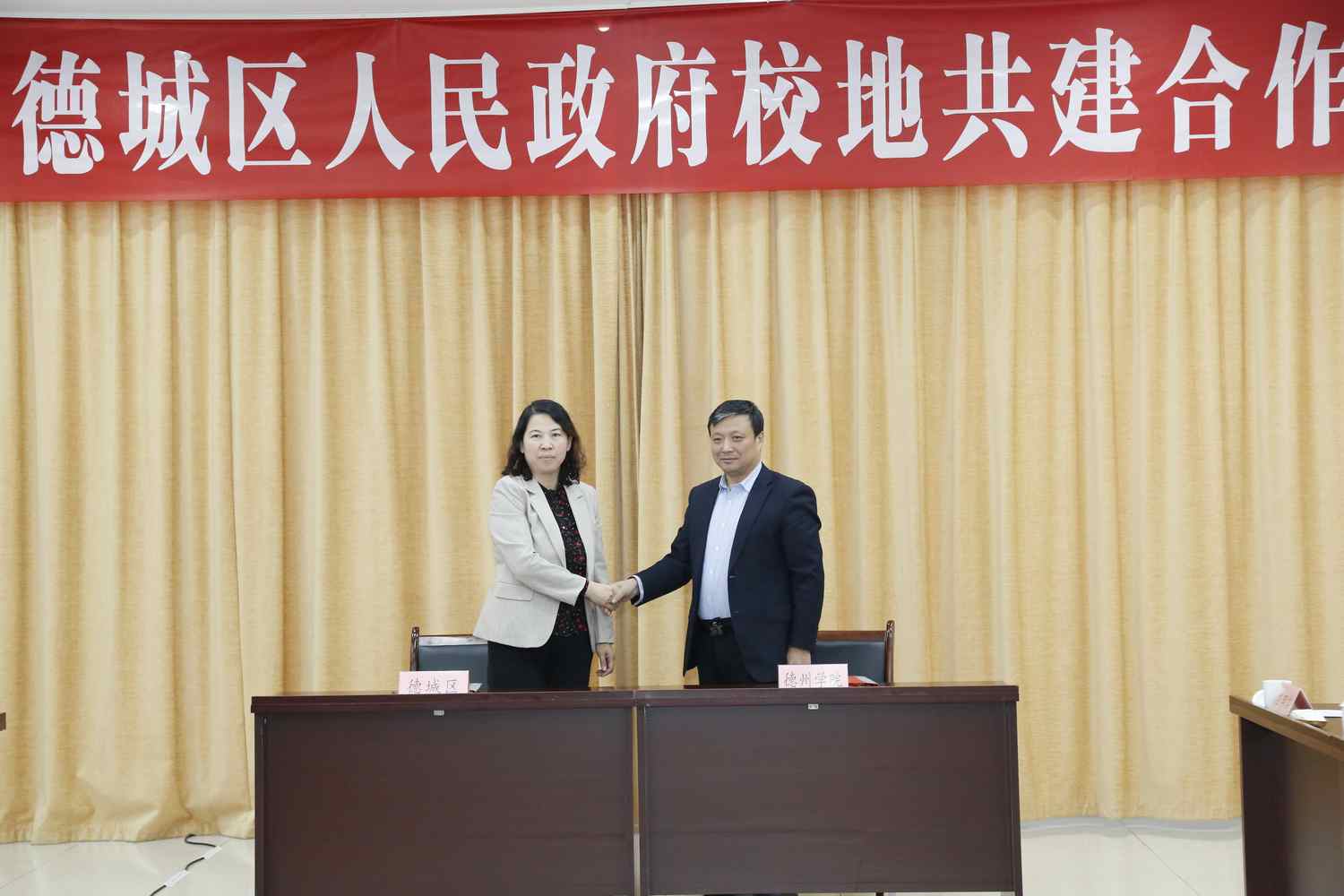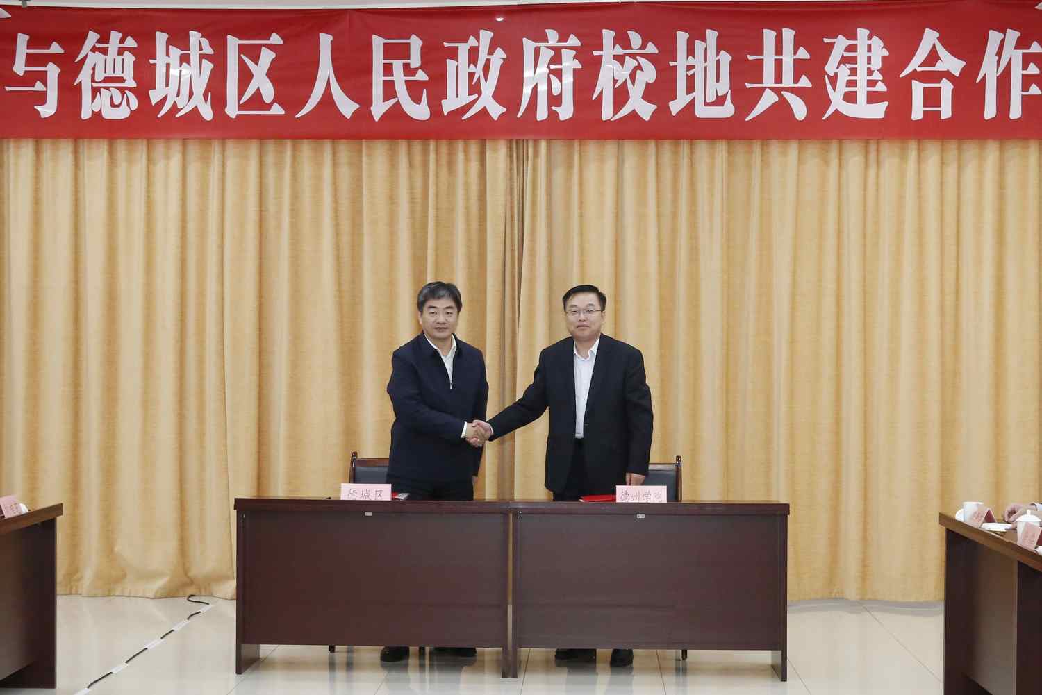 11月30日,在德城区委八楼三会议室举行校地共建合作签约仪式。德州市人大常委会副主任、德城区委书记张泽中,德州市政协副主席、市教育和体育局局长隋力,德州市委组织部副部长、市人才事业发展中心主任周春华,德城区委副书记、区长张因忠,区领导赵文彬、王守鑫、刘桂芝,Beat365唯一官方网站党委书记吴君,党委副书记、校长赵长林,党委委员、副校长徐静、李甲亮出席签约仪式。