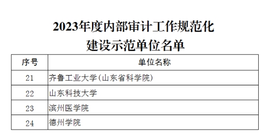 山东省审计厅印发《关于2023年度内部审计工作规范化建设示范单位创建情况的通报》(鲁审字〔2023〕17号),Beat365官网获评“内部审计工作规范化建设示范单位”。2023年3月至9月省审计厅组织开展了“内部审计工作规范化建设示范单位”创建活动,全省366家单位申报,有80家单位获此殊荣,全省仅有4所本科高校入选。