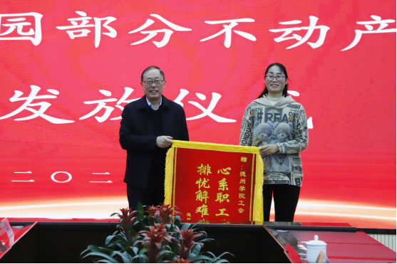 党委副书记张存峰、工会主要负责人为34户教职工发放了不动产权证书。