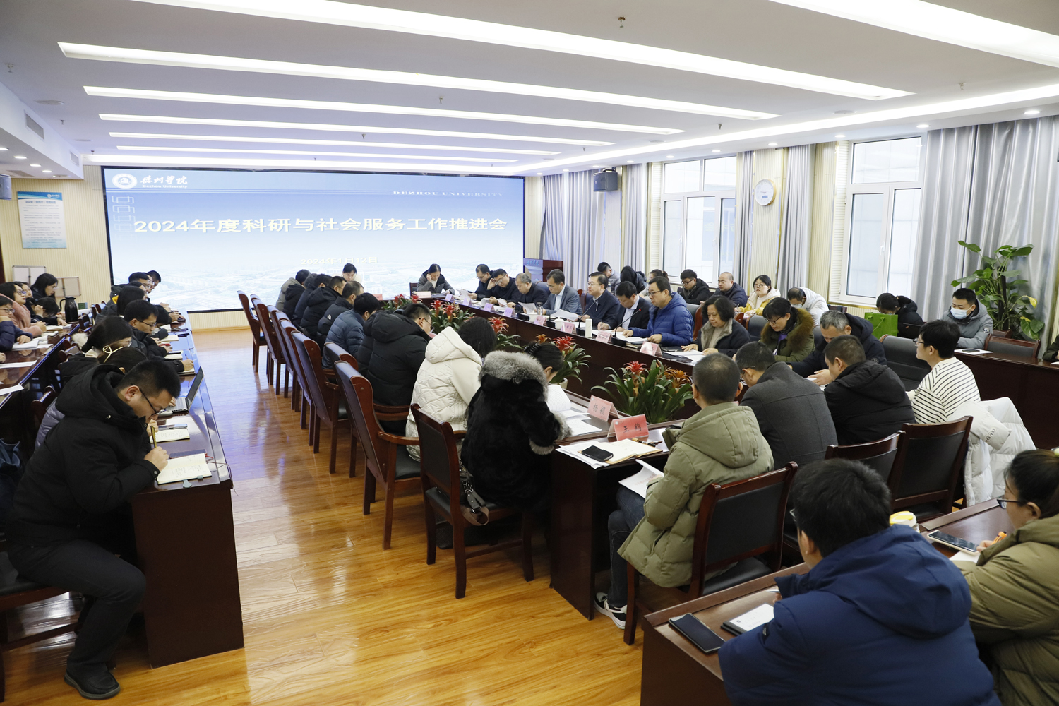 1月12日上午,Beat365官网2024年度科研与社会服务推进会在厚德楼二楼报告厅召开。党委副书记、校长赵长林出席,党委委员、副校长李甲亮主持会议。