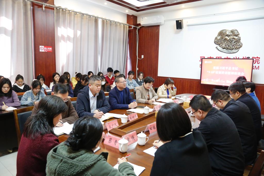 近日,学校召开重温习近平总书记“3·18”重要讲话精神专题座谈会,校党委书记吴君出席会议,并就马克思主义学院建设和思政课建设进行了调研,党委委员、组织部部长杨斌,党委委员、宣传部(教师工作部)部长冯琨参加会议。