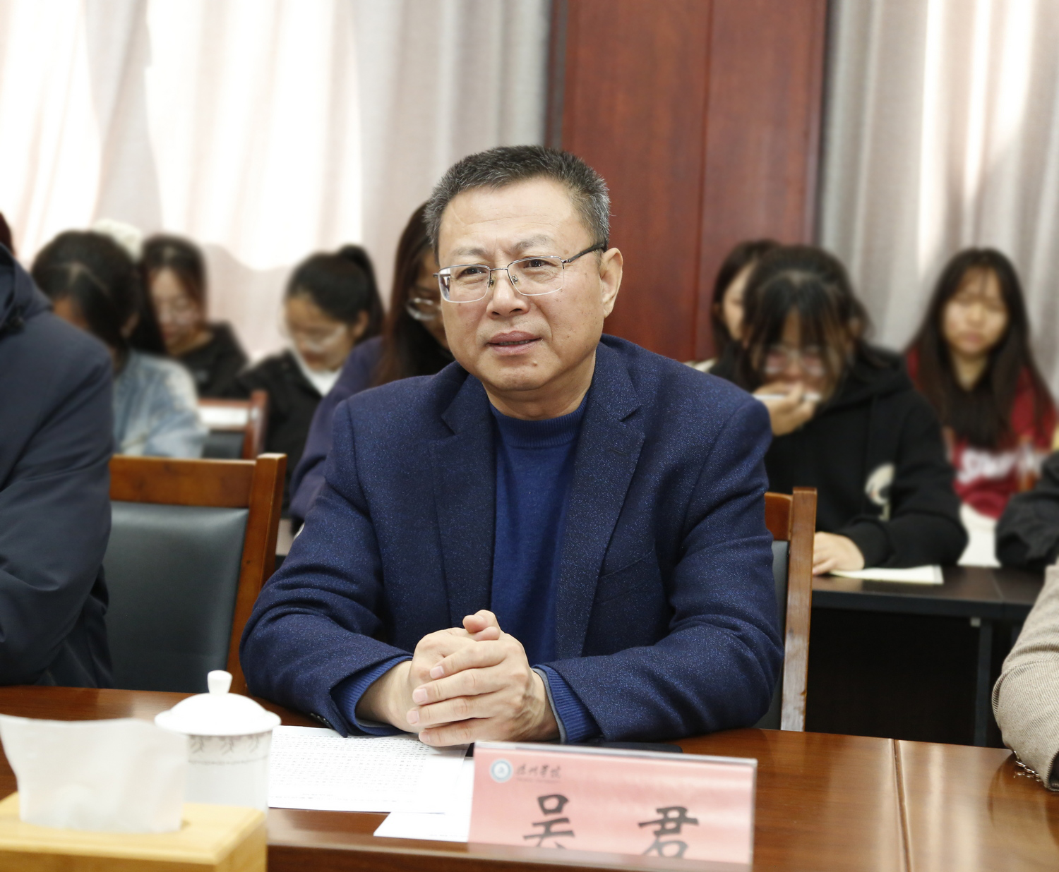 吴君在讲话中对过去五年来学校思想政治教育工作进行了总结。他说,2019年3月18日,习近平总书记主持召开学校思想政治理论课教师座谈会并发表重要讲话,为推进新时代学校思想政治教育创新发展指明了方向、提供了遵循。学校党委高度重视马克思主义学院建设、思政课建设,着力提供组织保障,政策支持,五年来,思政课建设水平、思政课教师队伍建设、马克思主义理论学科建设、人才培养水平都有新发展、新提升。