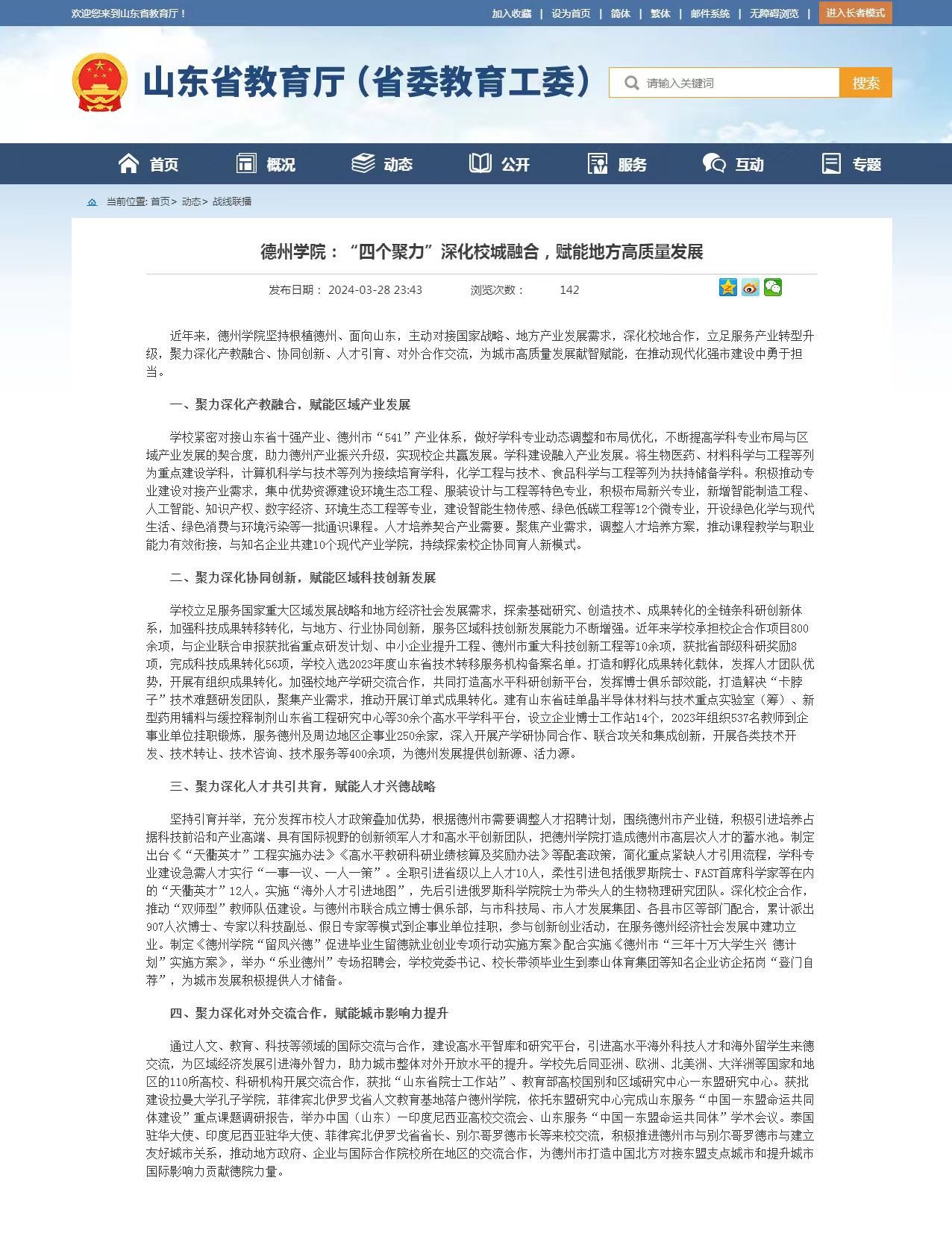 近年来,Beat365唯一官方网站坚持根植德州、面向山东,主动对接国家战略、地方产业发展需求,深化校地合作,立足服务产业转型升级,聚力深化产教融合、协同创新、人才引育、对外合作交流,为城市高质量发展献智赋能,在推动现代化强市建设中勇于担当。