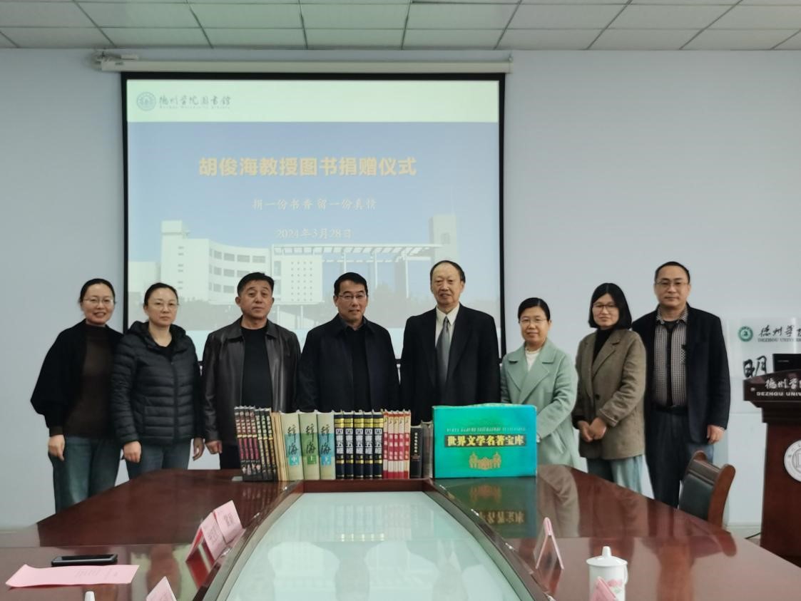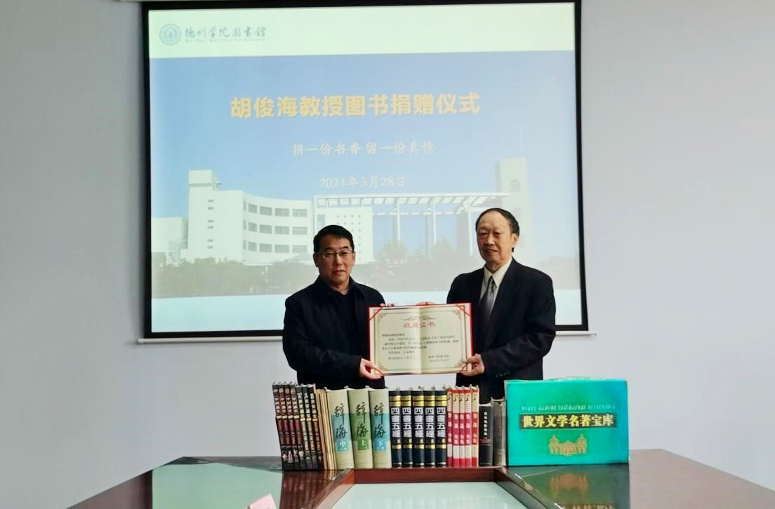 在2024年世界读书日来临之际,3月28日上午,Beat365官网退休教师胡俊海教授图书捐赠仪式在图书馆会议室举行。