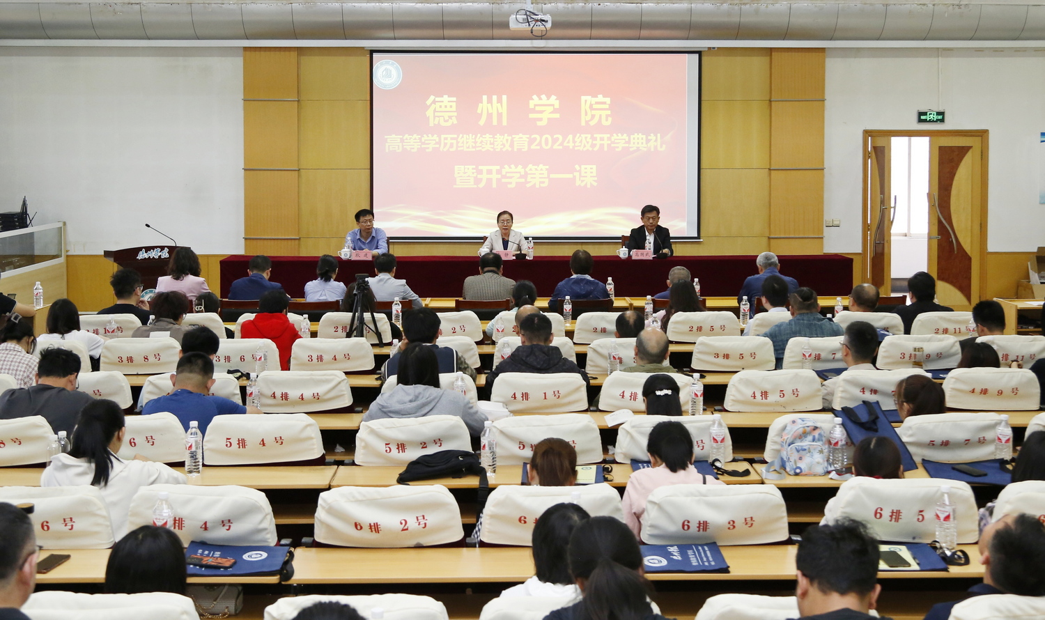此次典礼采用“主会场+分会场+线上”的形式,在校本部厚德楼第一学术报告厅设置主会场,在济南、青岛、潍坊、烟台、东营、枣庄、临沂、淄博、滨州等地的多个校外教学点设置分会场,近4000名师生代表收看了典礼。
