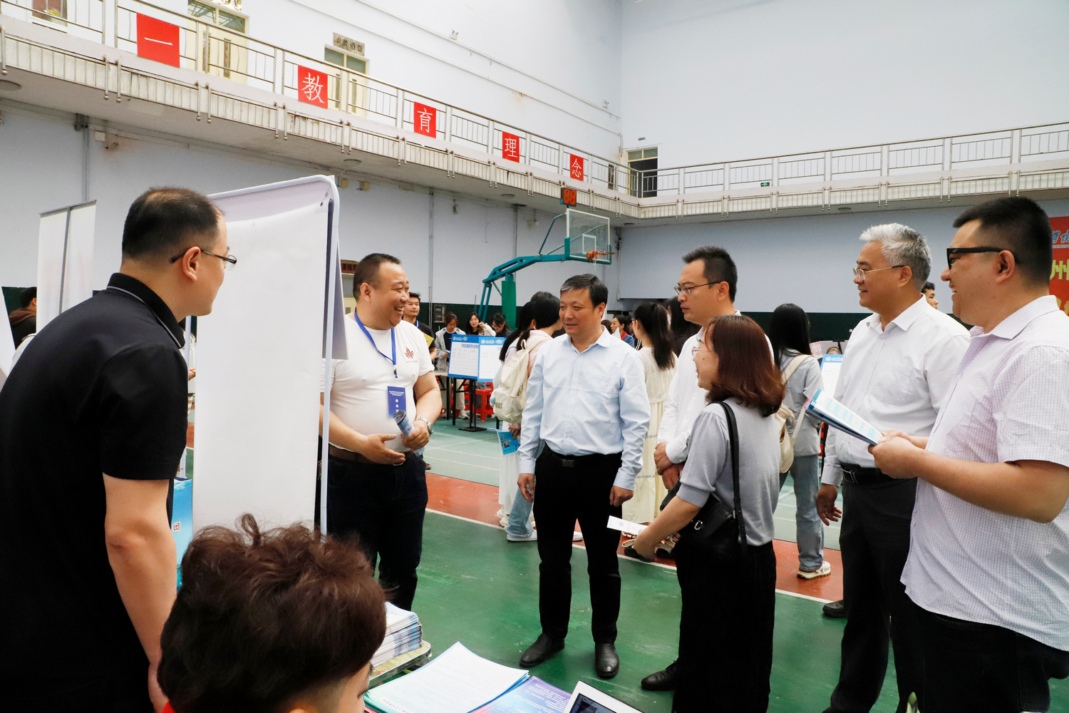 5月11日,Beat365官网在体育馆举办校友企业专场招聘会,学校党委委员、副校长李甲亮、蒋涛涛到现场指导工作。就业指导处、合作发展处、团委及各二级学院负责人参加招聘会。
