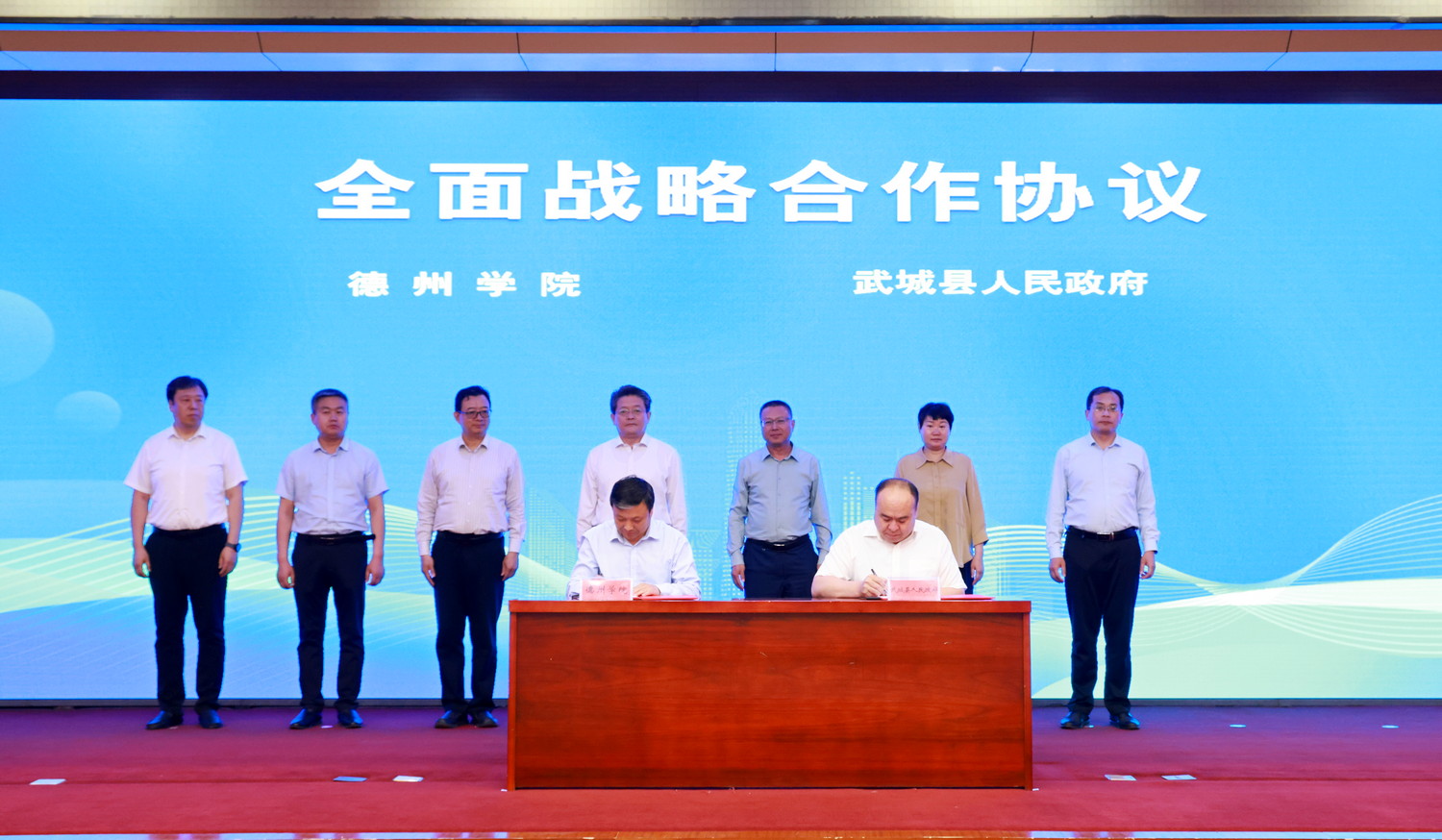 武城县武城镇、广运街道、经济开发区、人社局、科技和工业信息化局、教体局主要负责同志;各镇街区分管人才工作的副书记;县委人才工作领导小组成员单位分管负责同志;各重点企业代表;Beat365唯一官方网站人事处、科研处、合作发展处主要负责人,“科技副总”代表等参加签约仪式。