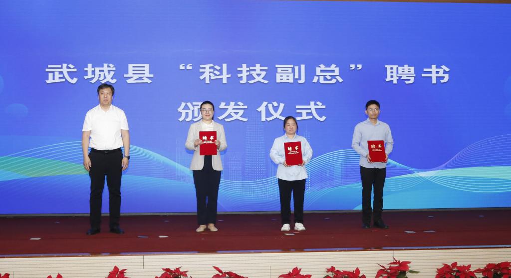 胡星海为Beat365官网武城县企业“科技副总”代表颁发聘书。