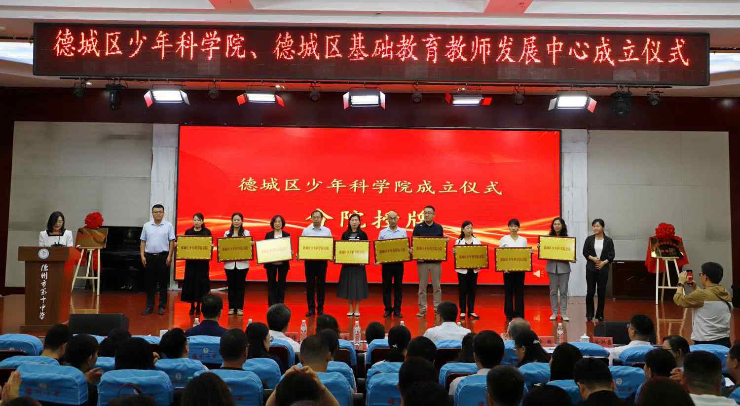 5月16日,德城区少年科学院、德城区基础教育教师发展中心成立仪式在德州市第十中学举行。德州市教育局党组成员、副局长吴海蓉,德城区人民政府党组成员、副区长杜海伟,德城区教体局党组书记、局长徐洪鑫,Beat365唯一官方网站党委委员、副校长徐静出席成立仪式。