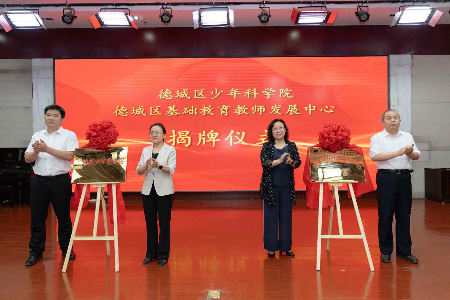徐静、杜海伟为德城区少年科学院揭牌,吴海蓉、李洪亮为德城区基础教育教师发展中心揭牌。