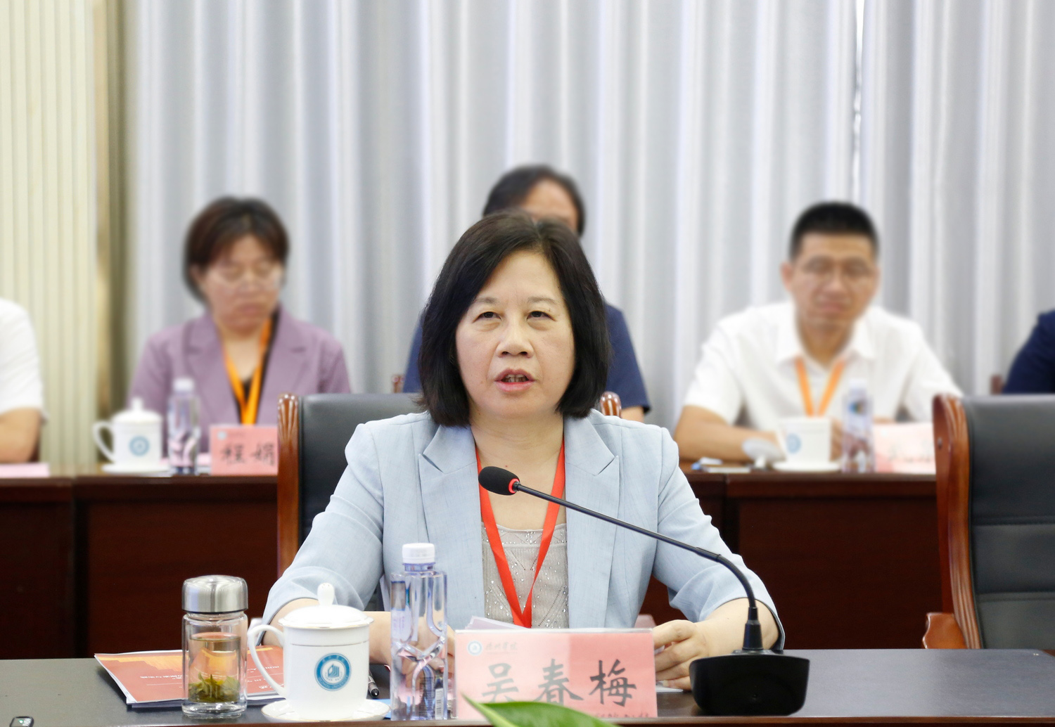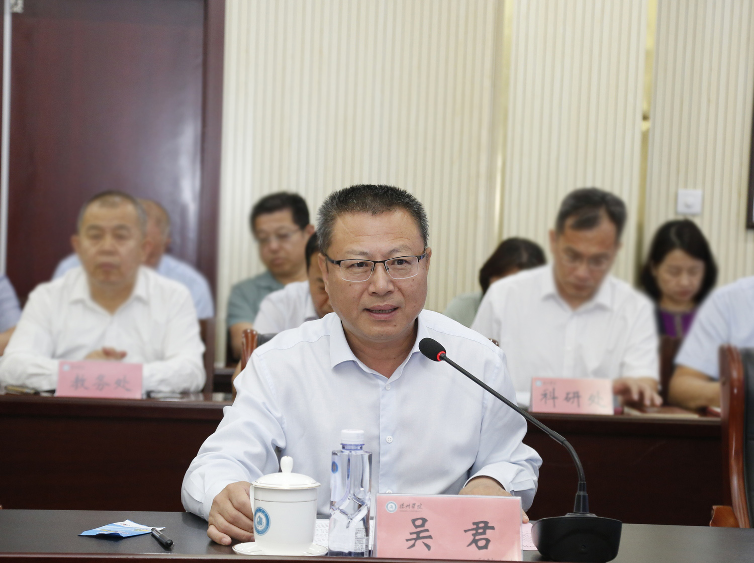 吴君在会上致辞。他对前期参与学校线上评估全体专家组成员的辛勤付出表示最衷心的感谢和崇高的敬意,对各位入校考察专家亲临学校进行悉心指导表示热烈的欢迎。强调了审核评估工作的重要意义。他说,此次本科教育教学审核评估入校评估,是学校借力借智“补短板、提质量、强管理”,促学校高质量发展的重要机遇。吴君表示,全校上下要倍加珍惜并把握好这次审核评估难得的学习机会,在专家们的悉心指导下,全面落实立德树人根本任务,全面提升办学水平和应用型人才培养质量。重点从三方面做好入校评估工作。一要强化责任落实,全力配合专家组开展工作。切实增强配合审核评估工作的使命感、责任感,积极与专家形成质量共同体,严格按照评估程序、方案要求和任务指令,全力做好专家组入校评估的各项服务保障工作。二要认真学习先进的办学理念和经验。抓住机遇,虚心听取各位专家的意见建议,认真学习先进理念和经验,有力、有序推动本科教育教学工作更高质量发展。三要坚持以评促建,全面提高教育教学水平。强化问题导向,虚心接受专家的指导和批评,认真梳理、深刻剖析人才培养方面存在的问题和不足,积极探索质量文化建设和高质量发展的新思路新举措,进一步筑牢人才培养的质量生命线,推进学校内涵式高质量发展。