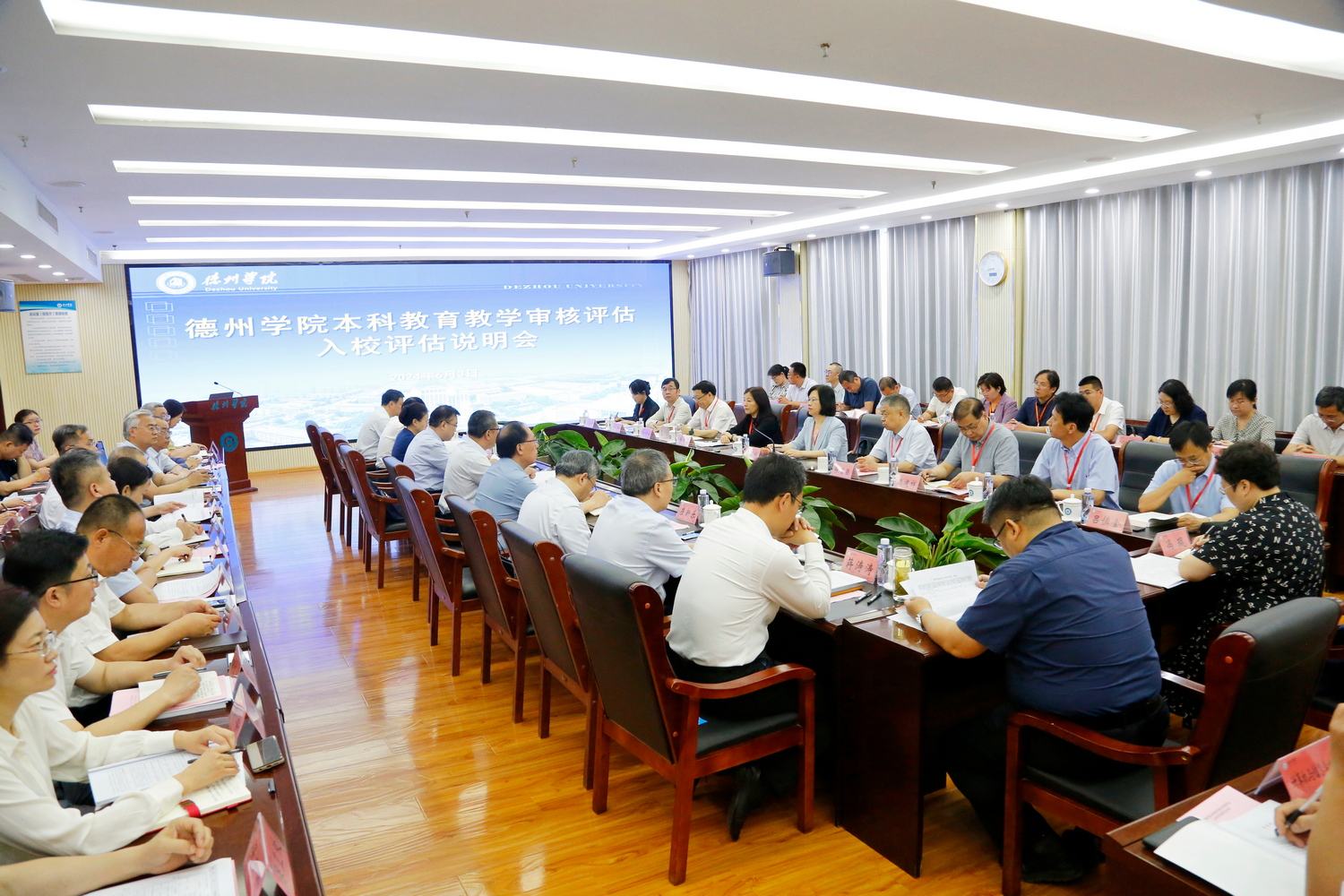 赵长林作审核评估工作补充报告。从“学校基本情况”、“本科教育教学工作主要成效”“存在的主要问题”“持续改进的措施”等四个方面介绍了学校本科教育教学办学特色。他表示,学校一定会珍惜这次难得的机遇,全力做好教育教学审核评估后半篇文章。根据评估专家组反馈意见,成立书记、校长任组长整改工作领导小组,制订整改方案和整改任务清单,切实把专家们用经验和智慧为学校开出的“良方”逐项落地落实落细落到位,完善和强化教学质量持续改进长效机制。下大力气抓好本科教育教学质量文化建设,提高精细化管理水平,让评估的核心理念落实到人才培养的各个环节,把质量意识渗透到教育教学每个环节,培养一批又一批德智体美劳全面发展、有理想、敢担当、能吃苦、肯奋斗的时代新人。