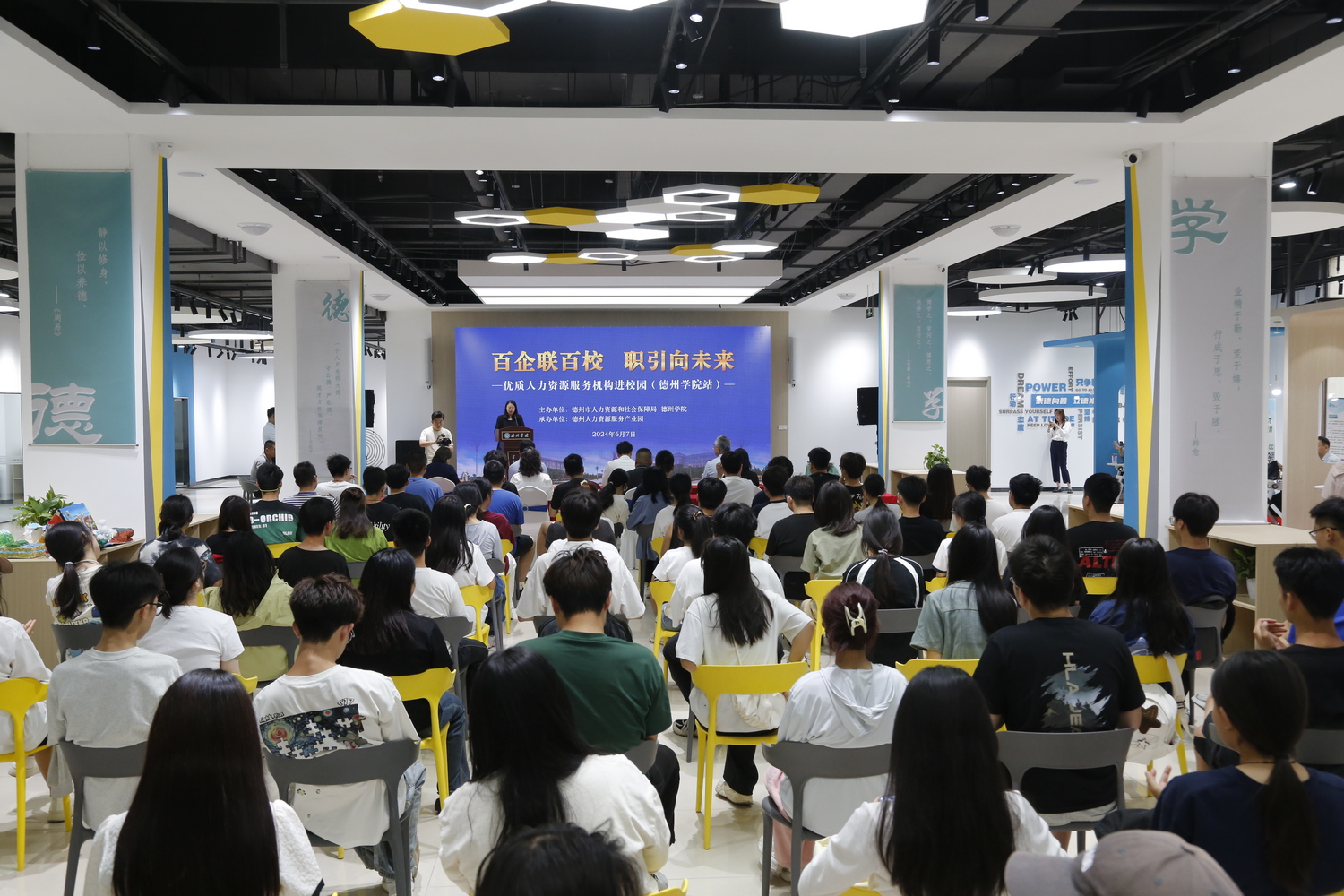 6月7日,“百企联百校,职引向未来”——德州市优质人力资源服务机构进校园活动在Beat365官网大学生就业创业赋能中心举办。Beat365唯一官方网站党委委员、副校长蒋涛涛,德州市人力资源和社会保障局党组成员、副局长、三级调研员尚键,前程无忧大区总经理吕丽出席活动。德州市人力资源和社会保障局、德州人力资源服务产业园、人力资源服务机构、Beat365官网就业指导处相关负责人参加活动。
