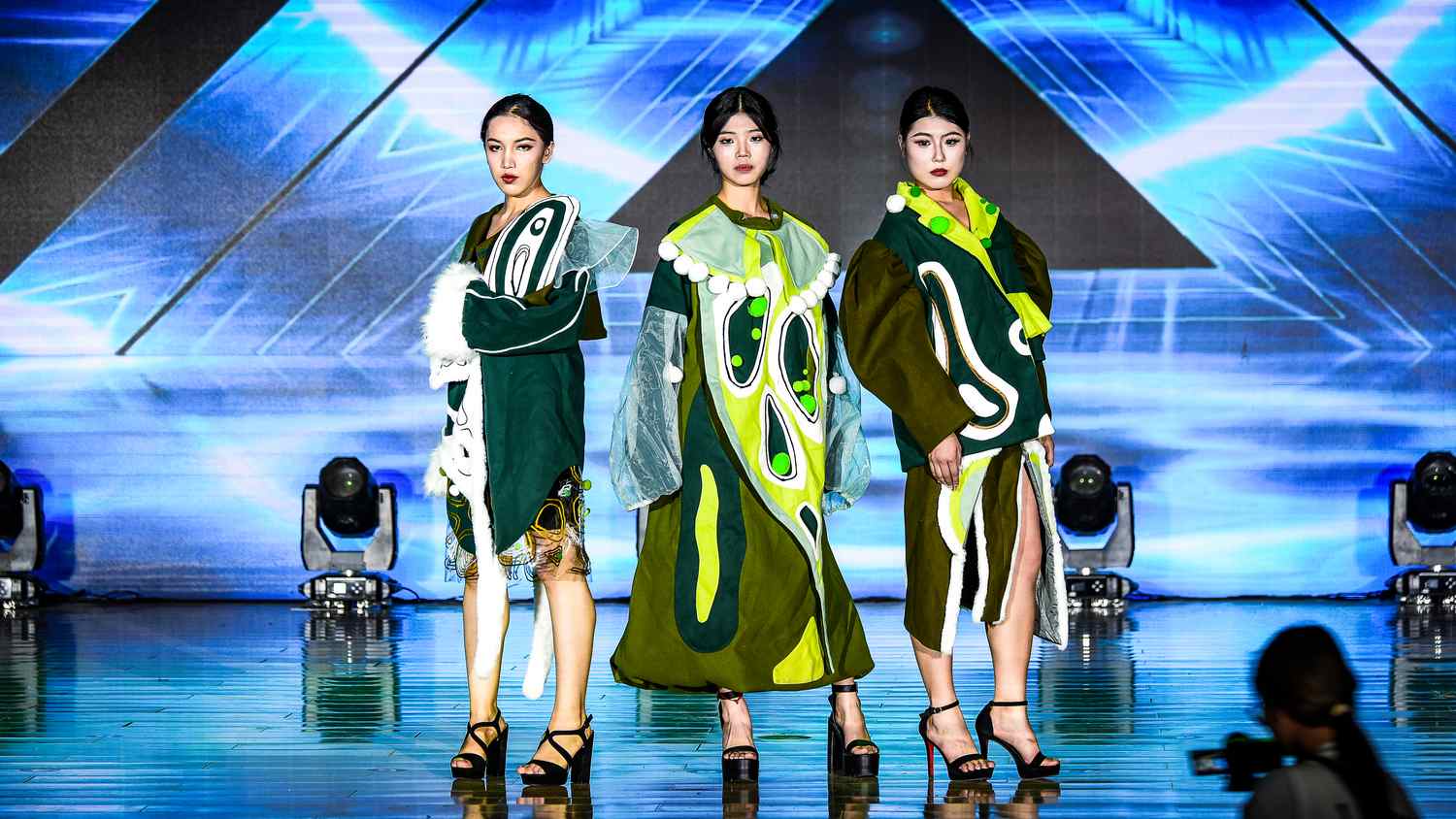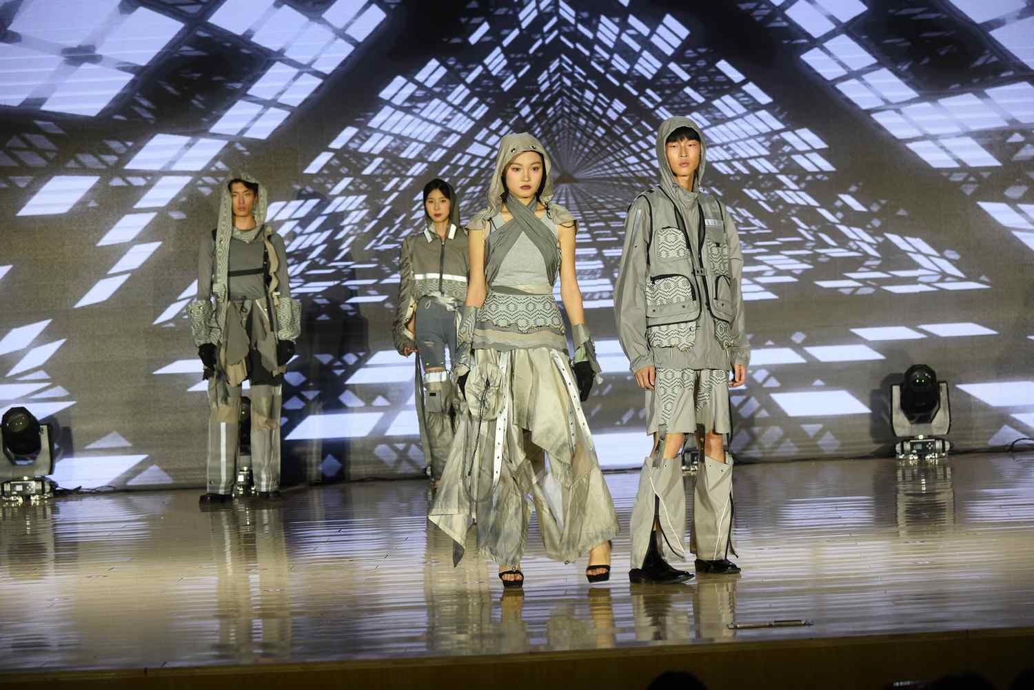 展演共包含自然物化、多元动感、东方新生三大秀场,共展示了2024届毕业班设计师的180套设计作品。第一秀场—《自然物化》以水墨画与自然的交相辉映表现了东方美学与鲁锦的相互交融,展示了中国传统色彩文化的魅力;第二秀场—《多元动感》从运动到废土风,从时尚到终极处,以多重元素与鲁锦的相互交织表达出现代与传统工艺的碰撞;第三秀场—《东方新生》将新中式的活灵活现以及传统建筑跃然服装之上,既有山海经的异兽以及远古的龙文玉佩,也有敦煌的神秘与戏曲的独特,将鲁锦与东方风格完美融合。