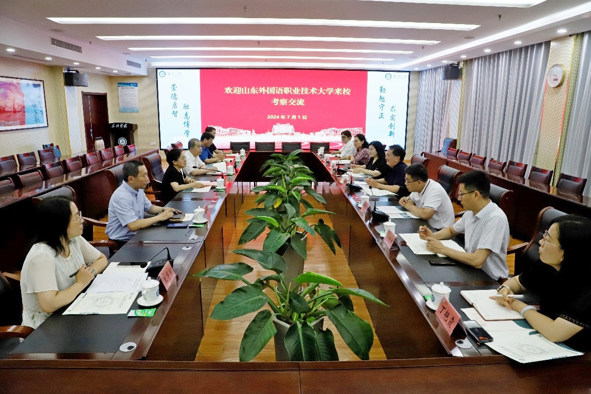 7月1日上午,山东外国语职业技术大学副校长陈文华一行来Beat365官网考察交流。党委委员、副校长徐静出席考察交流座谈会。
