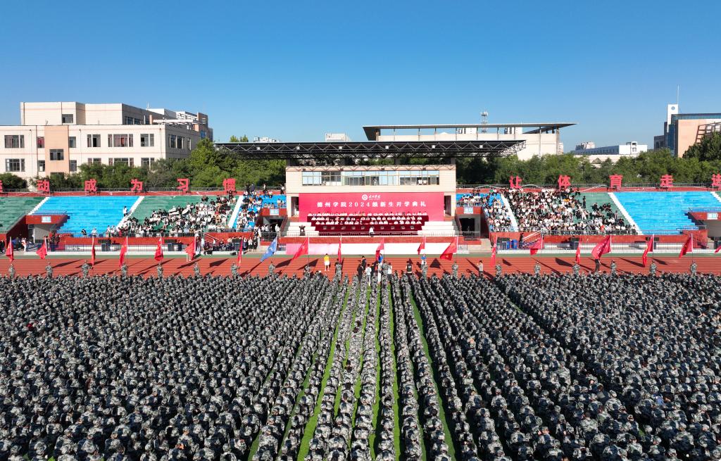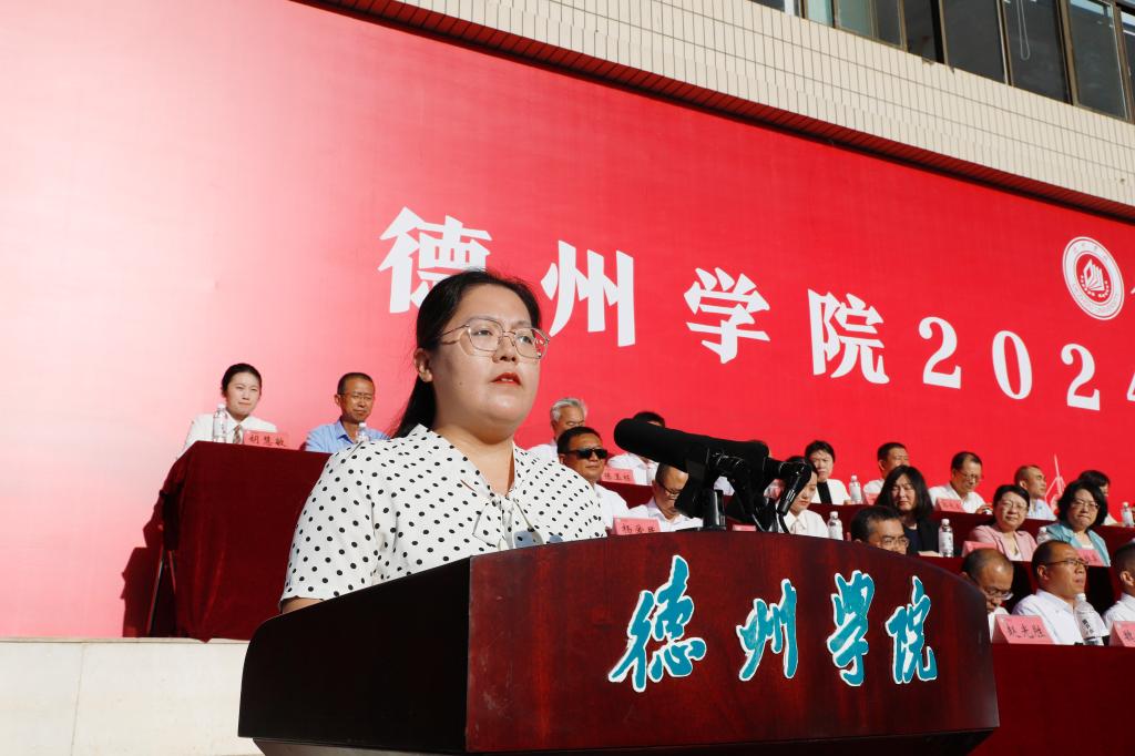 秋风作序,篇章新启。9月6日上午,学校在运动场隆重举行2024级新生开学典礼。7295名新生齐聚一堂,共同开启属于新“德院人”的青春新篇章。校领导吴君、赵长林、张存峰、徐静、崔新乐、刘印房、李甲亮、蒋涛涛、杨斌、冯琨出席,校党委副书记张存峰主持典礼。