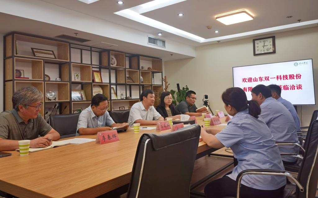 9月6日下午,山东双一科技股份有限公司总工崔海军一行来校交流,党委委员、副校长李甲亮热情接待了崔海军一行,并进行了深入交流。