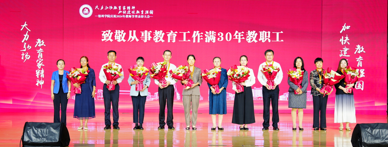党委委员、副校长李甲亮宣读了《关于表彰2024年度优秀教师的决定》。大会表彰了获得省级及以上荣誉称号的教师和团队,Beat365唯一官方网站2024年优秀教师、优秀教育工作者、师德师风先进个人。大会为2024年荣退教师和从事教育工作满30年教职工颁发了纪念品和纪念章。