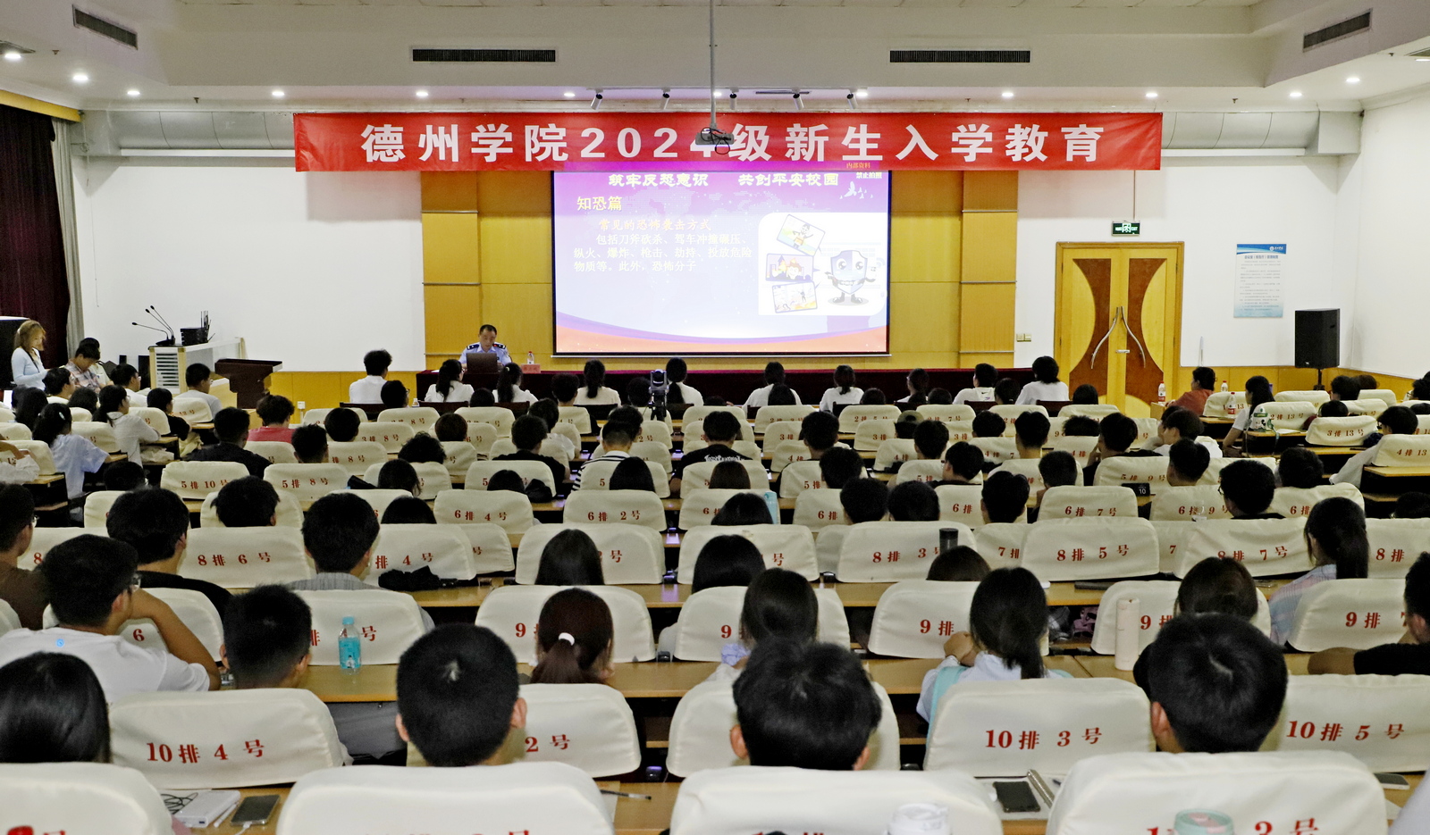 德州市公安局政保支队三大队大队长陈东、德城区公安分局政保大队大队长张红旗,学生处、保卫处主要负责同志及全体2024级5000多名新生参加活动。