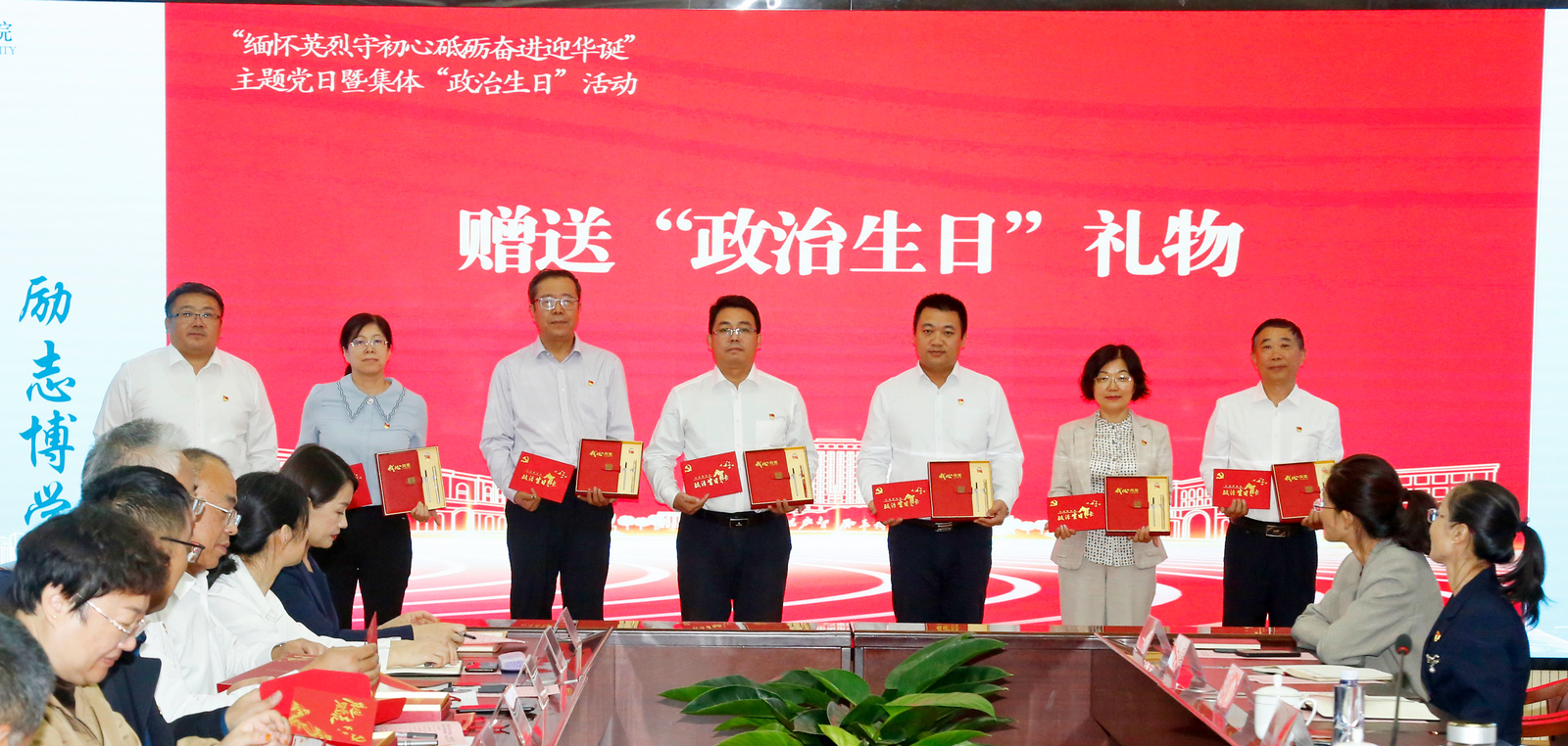 张存峰向过“政治生日”的党员同志表示衷心地祝贺,并结合机关党建工作提出四点希望和要求:一是要着力深化理论武装,争做绝对忠诚的模范。坚决践行旗帜鲜明讲政治的根本要求,带头做到“两个维护”,坚持用党的先进理论武装头脑,铸牢思想之魂;二是要着力夯实基层基础,争做组织建设的模范。强化机关党支部政治功能,扎实推进党支部标准化、规范化建设,把机关党员干部的活力激发出来,把党的组织优势转化为事业发展的强大动能,为学校事业发展汇聚起强大正能量;三是要着力加强作风建设,争做正风肃纪的模范。机关党员干部要不断提高自身履职能力和水平,真心实意为基层解决问题,以务实的作风推动机关各项工作,建设风清气正的政治机关;四是着力提升党建质效,争做“一融双高”的模范。机关党支部要坚持围绕中心、建设队伍、服务群众,推动机关党建和业务工作深度融合、相互促进,推动基层党建工作提质增效。