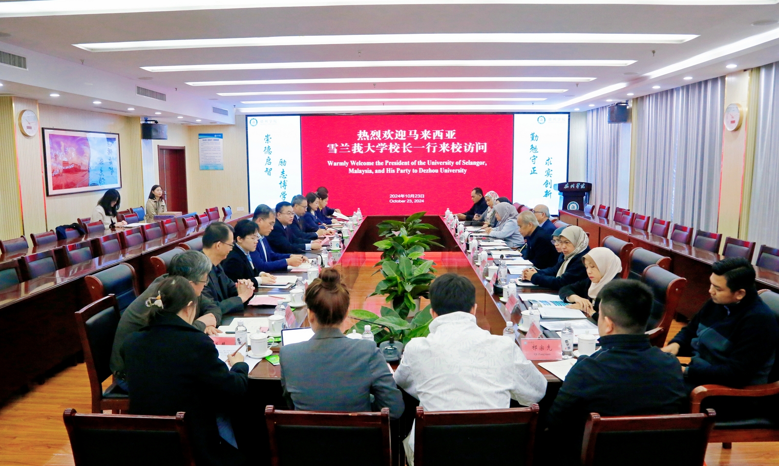 10月23日上午,马来西亚雪兰莪大学校长拿督莫哈末莱兹旺·奥斯曼一行来Beat365官网访问交流。Beat365官网党委副书记、校长赵长林,党委委员、副校长刘印房出席座谈会。