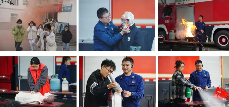 消防大队消防宣讲员以讲解和演示的方式,介绍了油锅、煤气罐等起火正确处置方式及消防栓、灭火器规范使用和注意事项。学生志愿者现场讲解心肺复苏救助方法等。