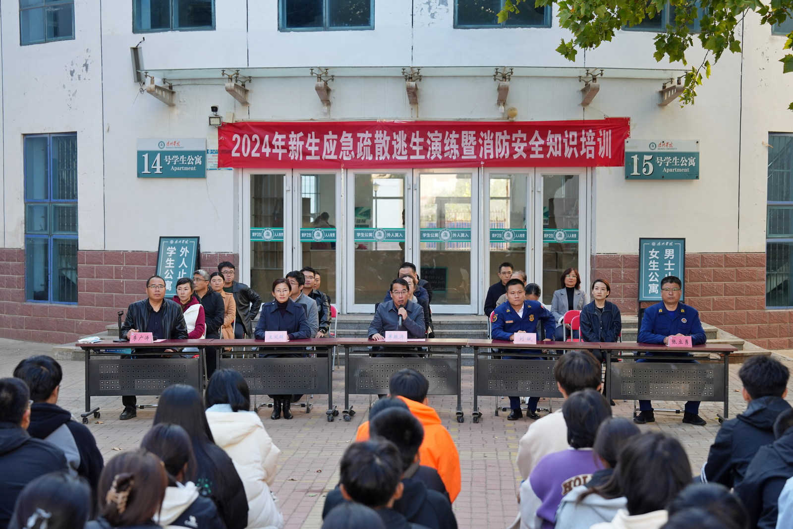 10月22日,学校组织开展2024级学生疏散逃生演练暨消防知识培训,校党委委员、副校长单振涛,德州市德城区消防大队大队长刘斌出席。