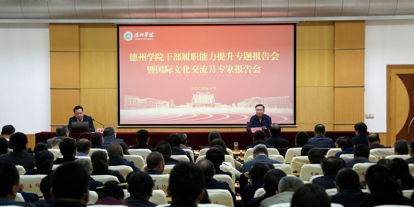 10月30日,学校举办干部履职能力提升暨国际文化交流月专家报告会,邀请安徽大学原党委书记蔡敬民教授作报告,校领导吴君、赵长林、张存峰、崔新乐、单振涛、刘印房、李甲亮、蒋涛涛、杨斌、冯琨出席会议,吴君主持会议。