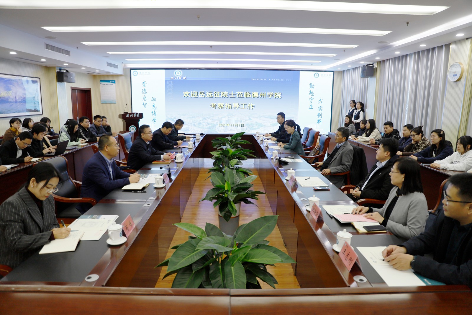 11月1日,丹麦奥尔堡大学化学系教授岳远征来校考察指导。校党委副书记、校长赵长林,校党委委员、副校长李甲亮,德州人才发展集团有限公司总经理梁栋热情接待岳远征教授并在厚德楼二楼会议室举行座谈。座谈会由李甲亮主持。