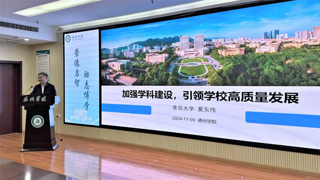 为强化二级学院学科建设主体地位,掌握学科建设规律,借鉴先进高校学科建设经验,发挥好学科建设龙头作用,引领学校高质量发展。11月3日上午,学校邀请中国高等教育学会第七届理事会常务理事、全国高校教学研究会常务理事、山东省学位与研究生教育学会副会长、青岛大学原校长夏东伟教授来校作《加强学科建设,引领学校高质量发展》的专题报告。会议由党委副书记、校长赵长林主持。