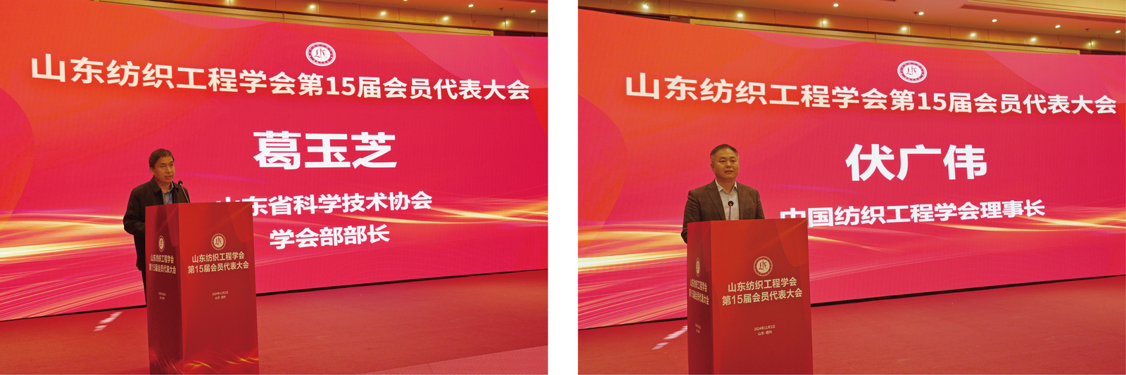 山东省科学技术协会学会部部长葛玉芝、中国纺织工程学会理事长伏广伟分别致辞。