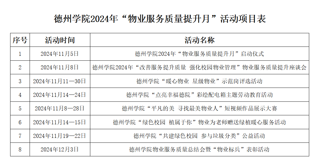 此次“物业服务质量提升月”活动将开展一系列的劳动与实践活动,通过座谈会、示范岗评选、彩绘配电箱主题教育,进一步推动学校物业服务的规范化、标准化、专业化建设,营造和谐、幸福、绿色的校园环境。