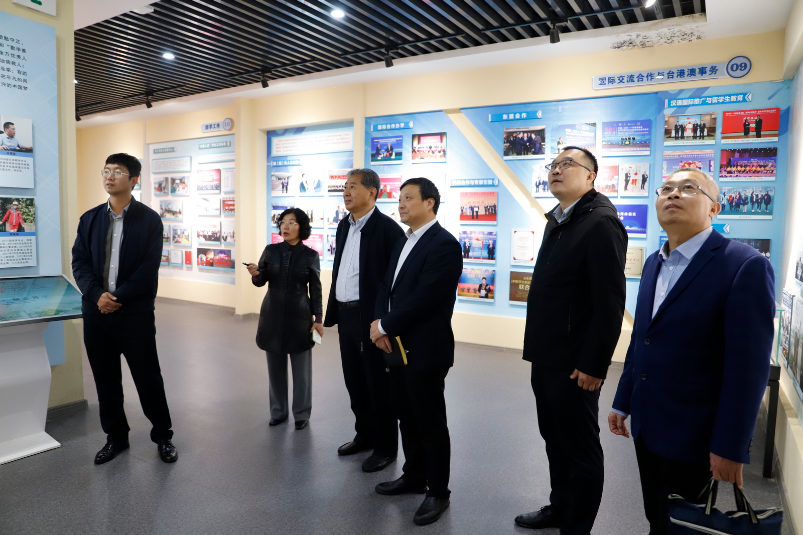 考察中,青岛城市学院一行参观了校史馆、国家纺织面料馆-Beat365唯一官方网站分馆、山东省生物物理重点实验室、大学生就业创业赋能中心。