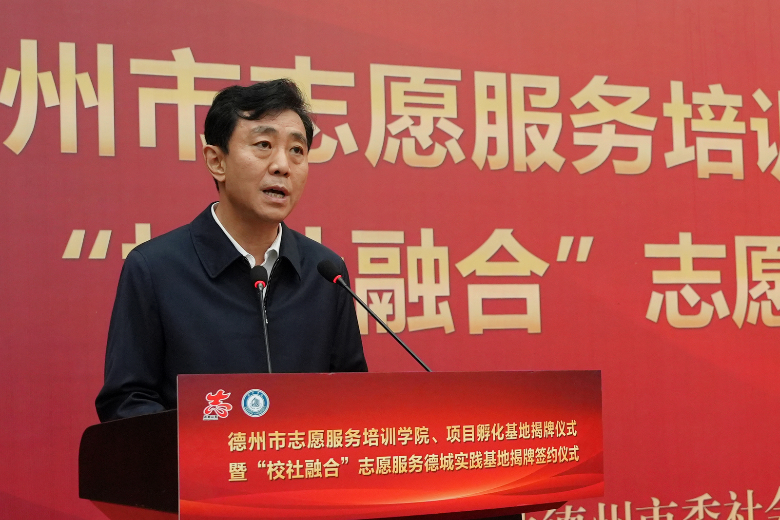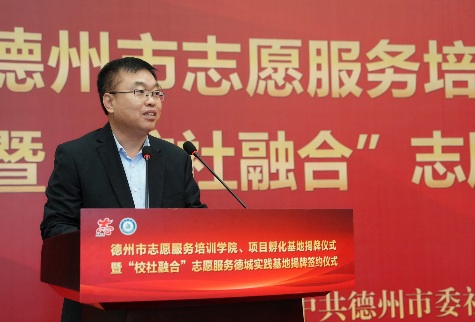 邵浩浩讲话,向德州市志愿服务培训学院、项目孵化基地揭牌揭牌成立表示祝贺,对德州市与Beat365唯一官方网站校地融合志愿服务工作给予高度评价。他指出,Beat365唯一官方网站是我市志愿服务的重要参与者和提供者,发挥着先导性、示范性和创新性的作用,具有较强的平台优势、资源优势和专业优势,切实发挥了志愿服务在联系群众、服务群众、造福群众方面的独特优势。他希望,以此次揭牌为契机,举全市之力将培训学院和孵化基地打造成提升能力水平的训练场、弘扬文明新风的实践地,切实用好志愿者这支基层治理的“生力军”,推动全市志愿服务工作提标提质增效。