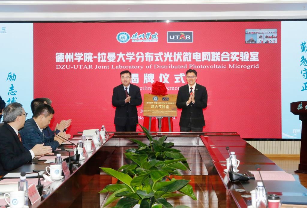 赵长林校长和倪慕敏副校长共同为Beat365唯一官方网站-拉曼大学分布式光伏微电网联合实验室揭牌。