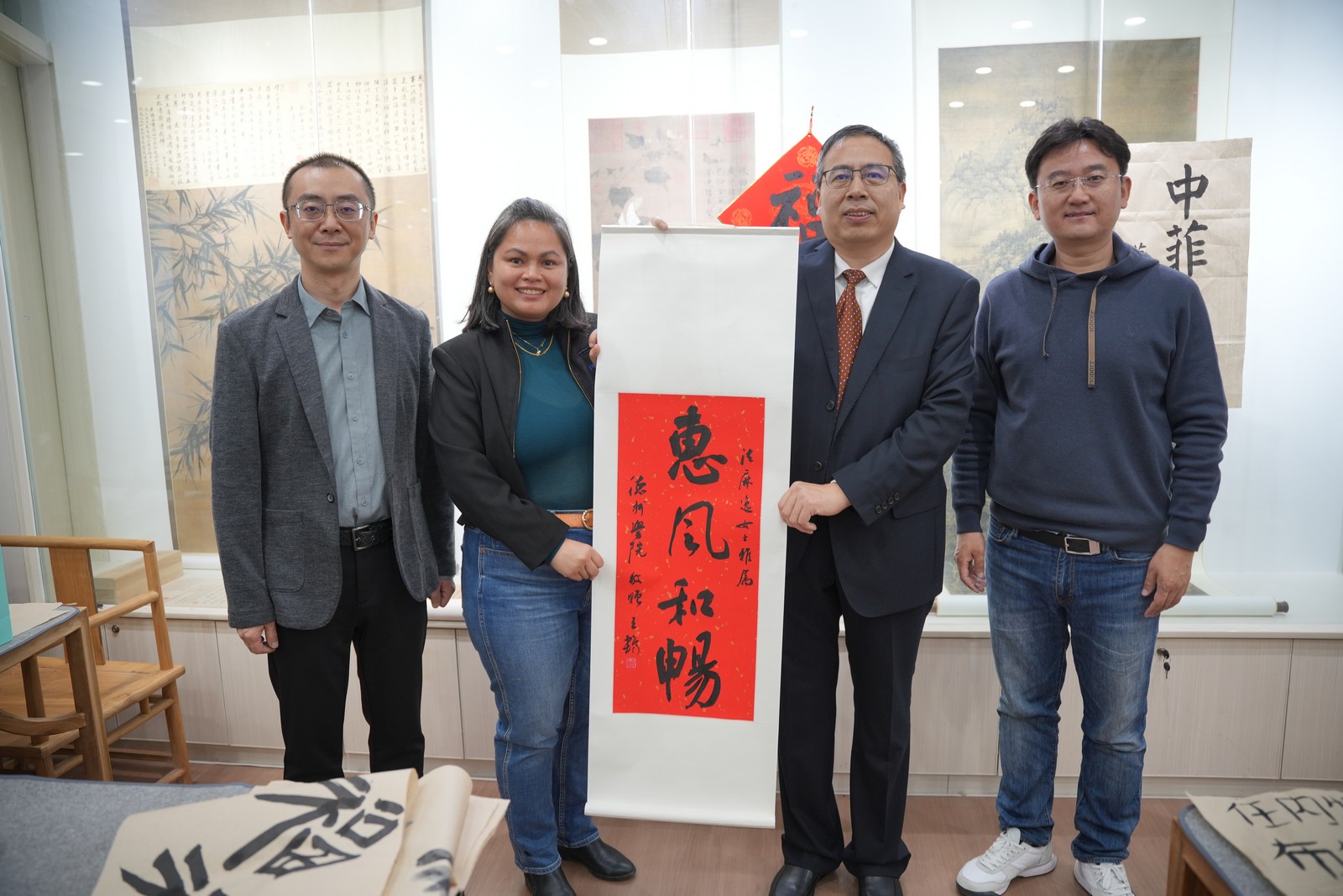 除了学术交流,菲律宾学生积极参与了多项中国传统文化课程,包括文学与历史文化学院的吟诵课、美术学院的书法课、音乐学院的中国传统舞蹈课以及体育学院的武术课。这些活动让菲律宾青年深入体验了中国传统文化的魅力,增进了对齐鲁文化的理解。期间,Beat365官网党委委员、副校长刘印房陪同菲律宾驻华使馆三秘兼副领事法麻逸到美术学院、文学与历史文化学院观摩体验中华传统文化课程,与菲律宾学生一起体验中华礼乐文化、翰墨书香。