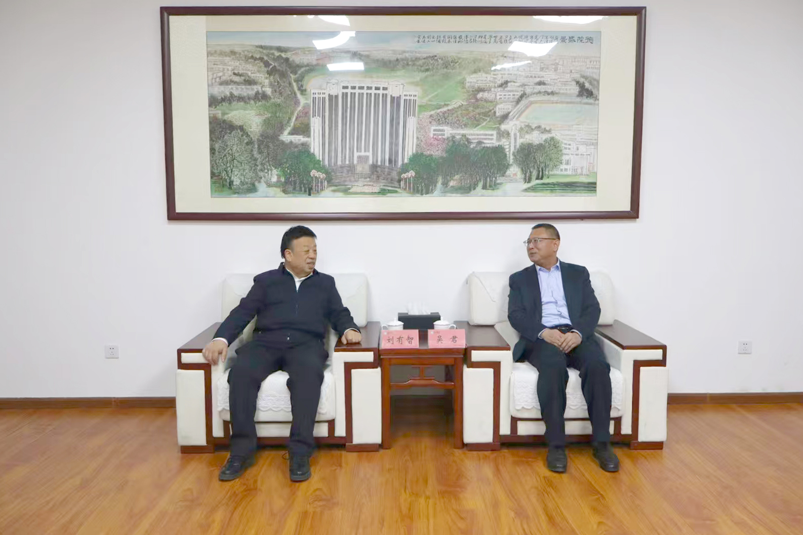11月26日,化学化工学院邀请教育部化工类专业教学指导委员会副主任、中北大学原校长刘有智教授莅临学校指导交流,校党委书记吴君与刘有智教授在厚德楼二楼贵宾室进行了交流会谈。