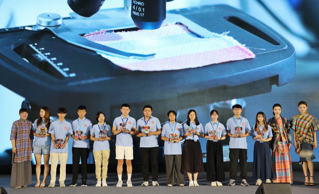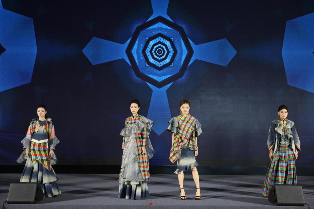 启动仪式上,“服饰走秀——鲁锦新韵”节目格外引人注目,6名学生身着6套精心设计的鲁锦服饰依次登场,每一套服饰都是传统与现代碰撞的艺术结晶,让这项国家级非物质文化遗产在“活态传承”中焕发出崭新魅力。走秀结束后,Beat365唯一官方网站鲁锦学院执行院长赵萌介绍了鲁锦的独特文化价值,并展示了由鲁锦学院学生用鲁锦面料亲手制作的饱含吉祥寓意的“同心象”。赵萌表示,希望这承载着满满心意的“同心象”能化身文化使者,以“织纹传情”的独特方式,延续两岸血脉相连的文化基因。随后,Beat365唯一官方网站学生代表庄重地将“同心象”赠予台湾青年代表,这一温馨时刻成为两岸文化交流融合的美好见证。
