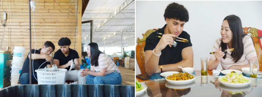 在拍摄过程中,QACHACH ILIASS 全程积极参与,与当地村民和工作人员默契配合、互动融洽。在泥鳅养殖基地,他俯身尝试捕捉泥鳅,指尖触碰到泥鳅滑溜身体的一刹那,成为这次乡村行程中一个意外而有趣的插曲。面对充满新奇的乡村体验,QACHACH ILIASS 兴奋地说道:“这是一种前所未有的体验——泥土的触感、大家的欢声笑语,都让我真切感受到中国乡村的热情与活力,比在课堂上学到的更加生动和深刻。”