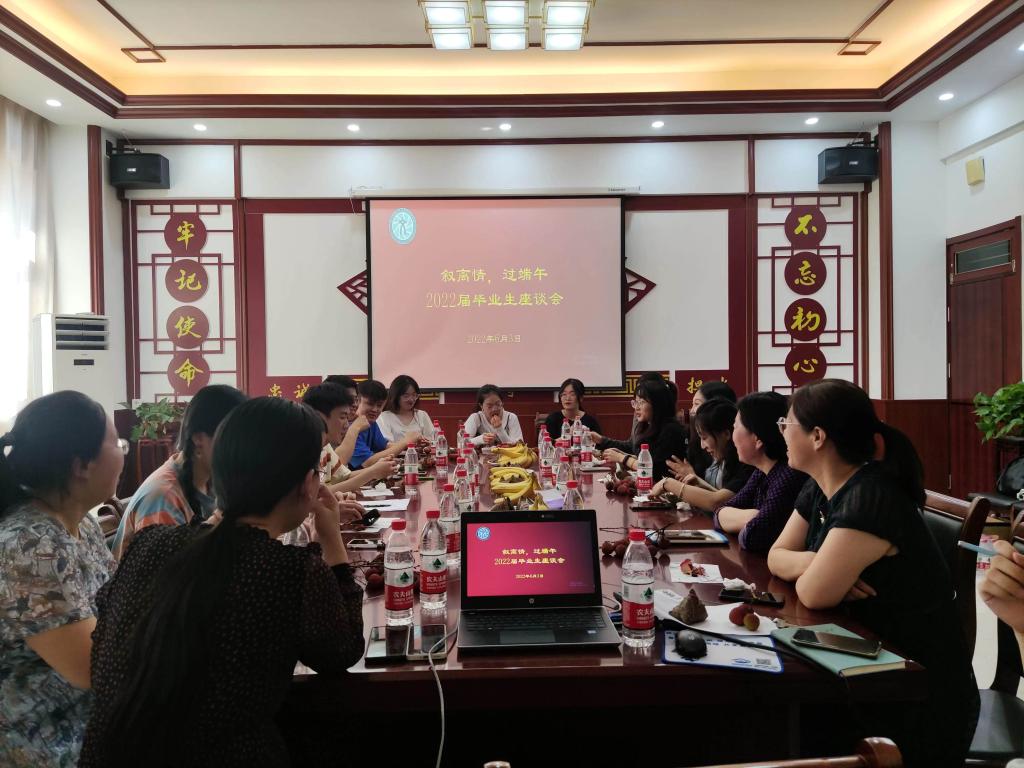 近日,在2022届毕业生即将离校之际,文学与新闻传播学院在博文楼会议室举行了“叙离情,过端午”2022届毕业生座谈会。文学院领导班子成员、教师代表和2022届毕业生代表参加了此次活动。
