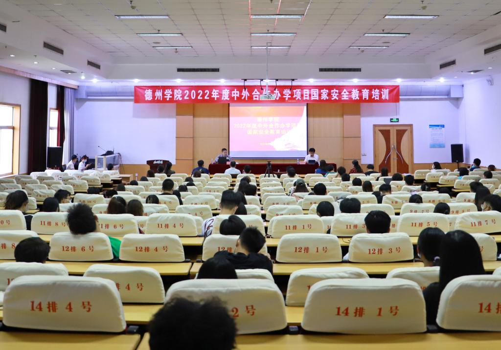 为进一步提升中外合作办学项目管理人员和学生的安全保密意识,提高自身涉外安全防范能力,5月31日,学校在四楼报告厅设主会场、生命科学学院、能源与机械学院分会场举办2022年中外合作办学项目国家安全教育培训会。会议邀请德州市国家安全局许警官主讲,副校长李永平出席会议并主持。