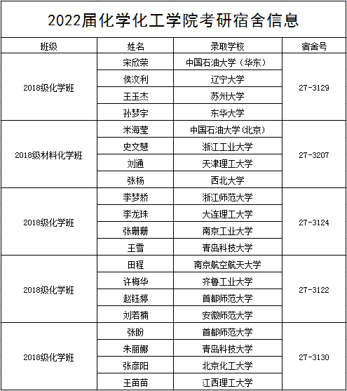 随着考研录取结果陆续公布,目前,化学化工学院已有5个宿舍20朵金花携手考研集体上岸。