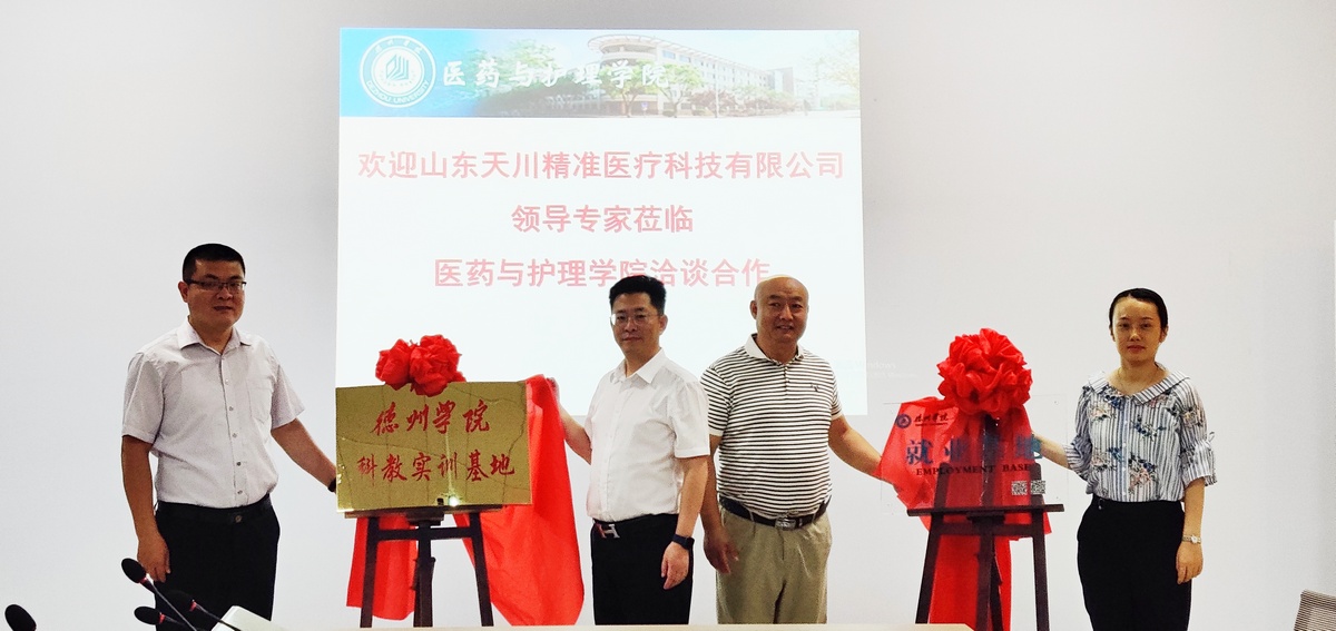 为进一步深化应用型高校内涵建设,深入开展校企合作,助推校城深度融合,6月22日,医药与护理学院与山东天川精准医疗科技有限公司洽谈全面合作并签署合作协议。天川精准医疗董事长樊晋宇博士、总经理潘梦雨、人事总监李玉文、外联主任邹衍树,Beat365唯一官方网站合作发展处副处长侯志刚、医药与护理学院领导班子出席活动。