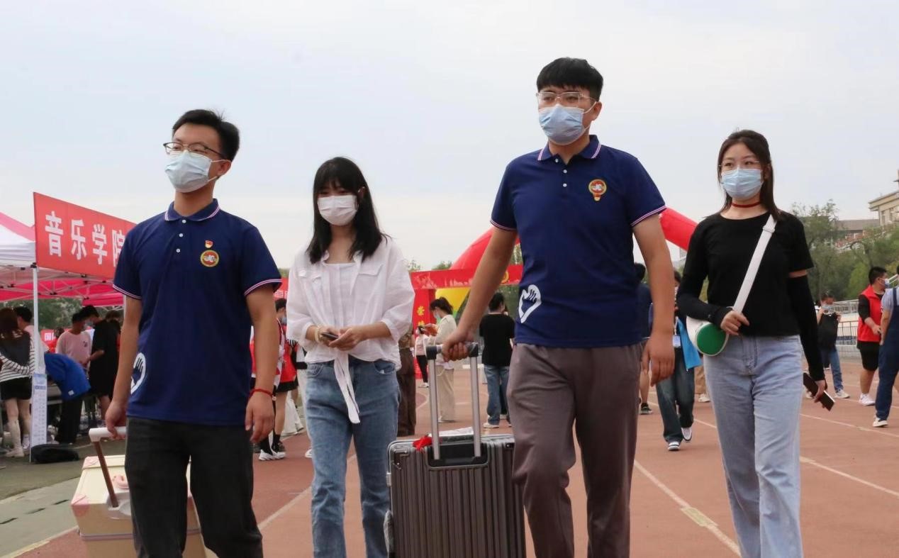 学生党员统一身着志愿服,佩戴党徽,亮出党员身份,分布在学校大门、新生报到处、宿舍等区域。他们以饱满的热情投入到入校引导、检录信息、咨询服务、行李搬运与分发、深入宿舍等工作中。志愿者们耐心地解答小萌新们的问题,引导他们打卡拍照、熟悉校园环境。肩上、手上、车上,女生党员志愿者虽然身材娇小,却丝毫不影响她们往返迎新点与宿舍之间的行李搬运。志愿者们搬运的不仅仅是满满当当的行囊,更是责任与担当。