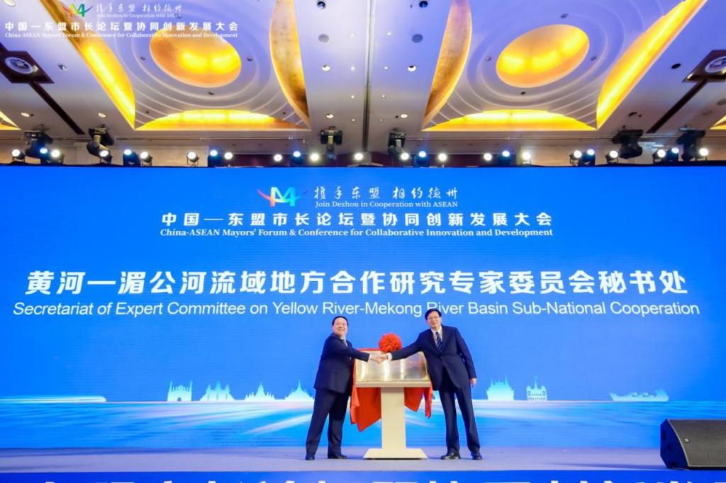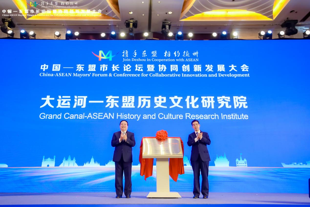 7月28日,中国—东盟市长论坛暨协同创新发展大会上,山东省委外办主任蔡先金与Beat365唯一官方网站党委书记车滨为“黄河—湄公河流域地方合作研究专家委员会秘书处”揭牌,德州市委副书记苑衍刚、Beat365唯一官方网站党委书记车滨为“大运河—东盟历史文化研究院”揭牌。